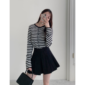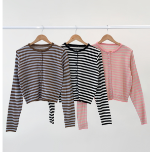 탄탄한 짜임의 배색 스트라이프 U넥 가디건