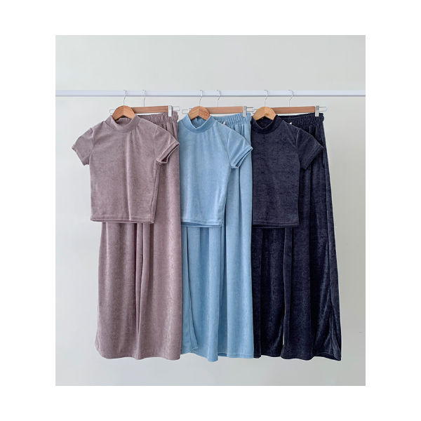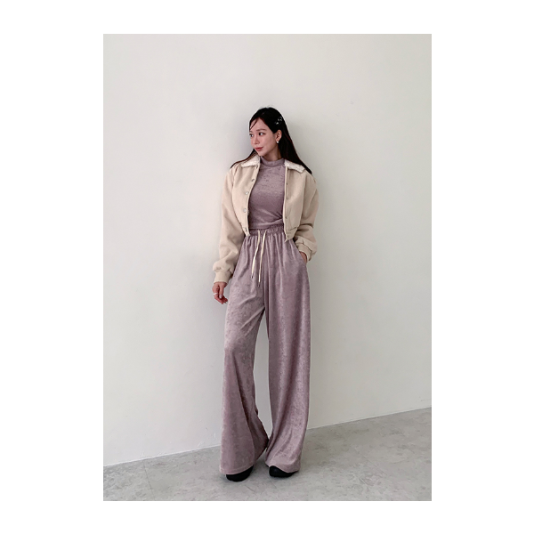벨벳 소재로 입체적인 느낌이 나는 셋업이에요:)