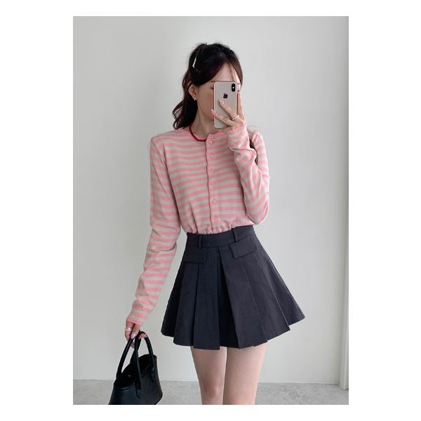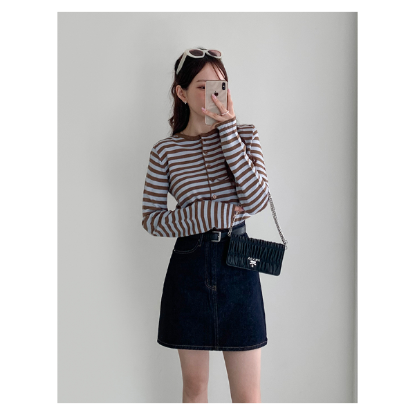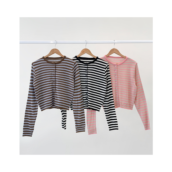 탄탄한 짜임의 배색 스트라이프 U넥 가디건