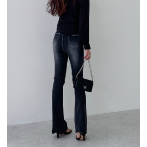 통 다운된 블랙진이 고급스러운 느낌 가득하고