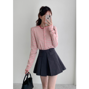 탄탄한 짜임의 배색 스트라이프 U넥 가디건